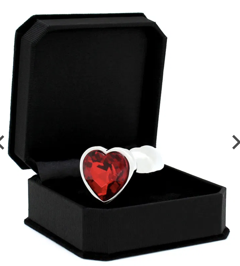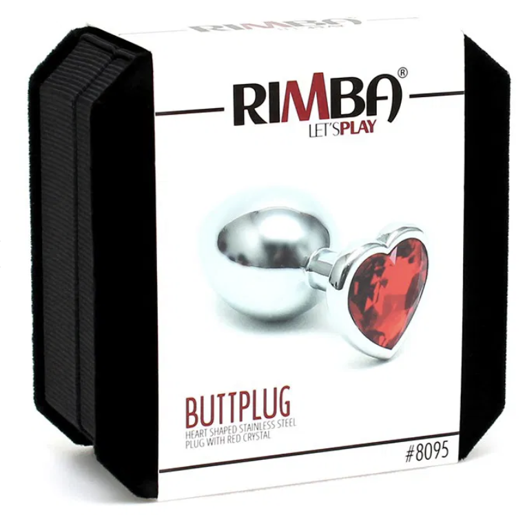 Rimba Bondage Play Metall Buttplug Juwel aus Inox mit einem Herzform Kristall. Dieses Einzelteil kommt in ein luxuriöses Juwelkiste. Länge des metal Teil ist 73 mm. Das Ei-form ist 45 mm. lang mit einem Diameter von 30 mm. Dieses feine Stück Arschjuwel ist erhältlich mit verschiedenen Farben von Steinen: transparent, rot, lila und rosa.