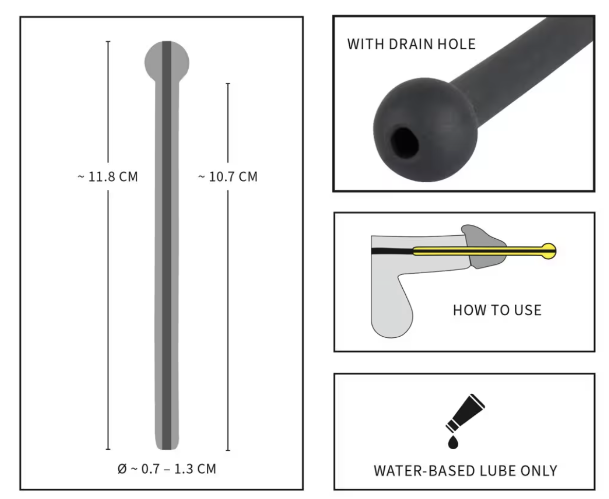 Penisplug Piss Play: Einführen, spüren und genießen – für den Mann, der ganz neue Lustgefühle erleben möchte. Hohler, flexibler Dilator mit Stopperkugel, der in die Harnröhre eingeführt wird.