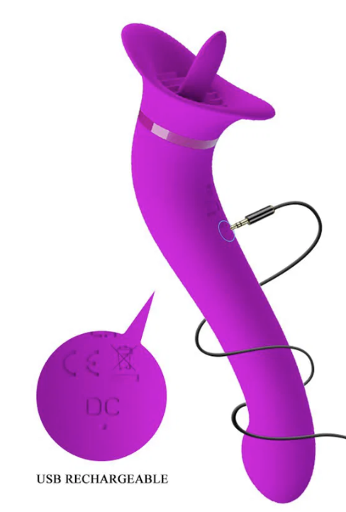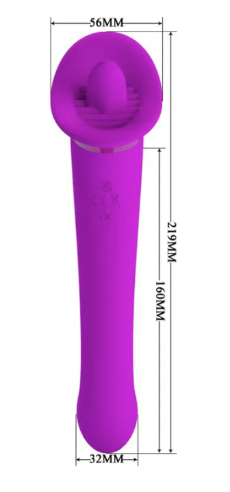Dieser Vibrator und Oralsex-Stimulator bietet dem Benutzer 12 Vibrationsmodi sowie 12 Leckeinstellungen, um die Klitoris zu stimulieren.