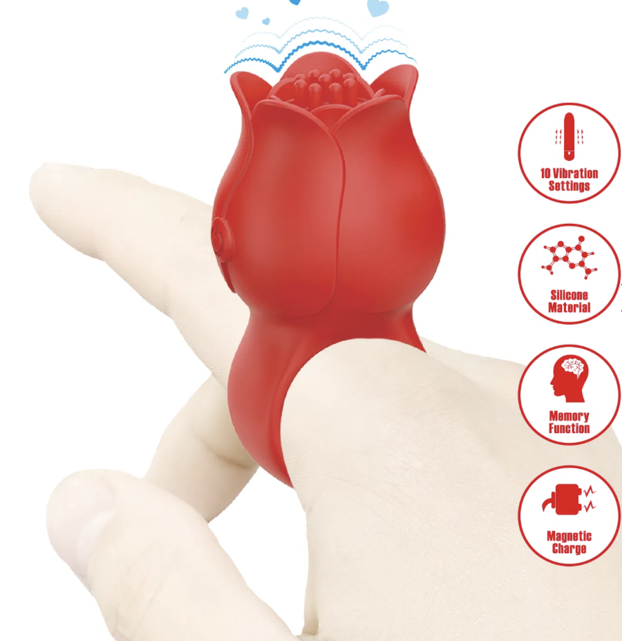 Verleihen Sie Ihrem Vorspiel eine verspielte und sinnliche Note mit dem Ringvibrator, einem weichen, rosenförmigen Fingervibrator, der sich leicht auf Ihren Finger schieben lässt und sofort einsatzbereit ist.