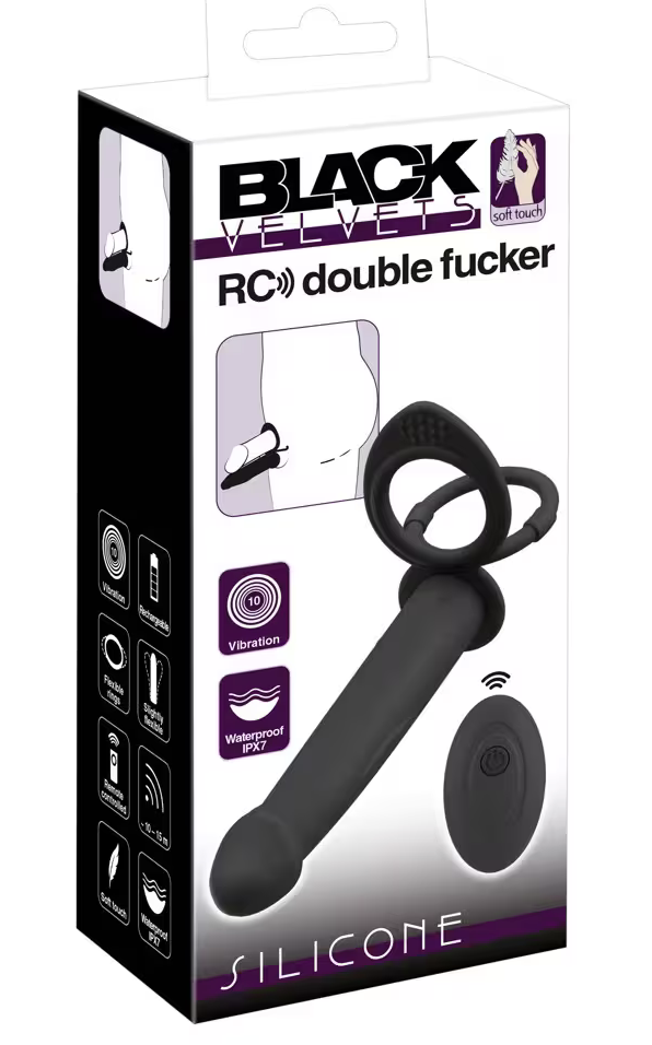 Der RC double fucker von Black Velvets stattet ihn zusätzlich mit einem (zweiten) Vibro-Penis aus, um gleich doppelt zustoßen zu können. Der schlanke leichte Analvibrator ist fest an dem kombinierten Penis- und Hodenring arretiert. Die Ringe werden einfach über Penis und Hoden gestreift und halten den Vibrator fest und sicher an seinem Platz. Die Ringe unterstützen zudem durch strammen Sitz die Erektion.