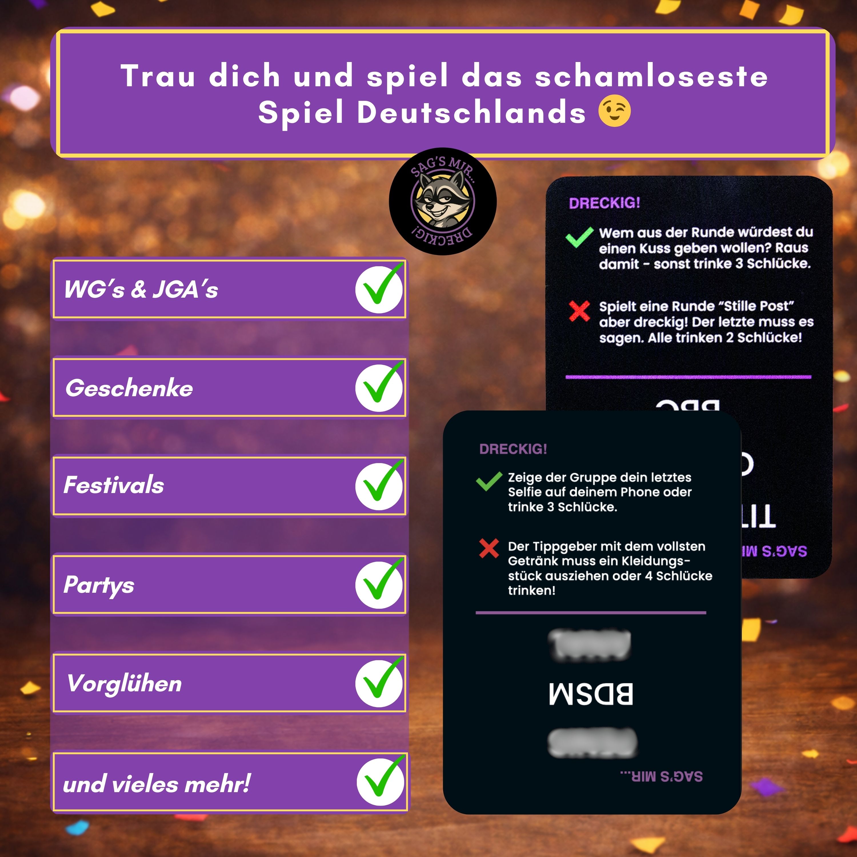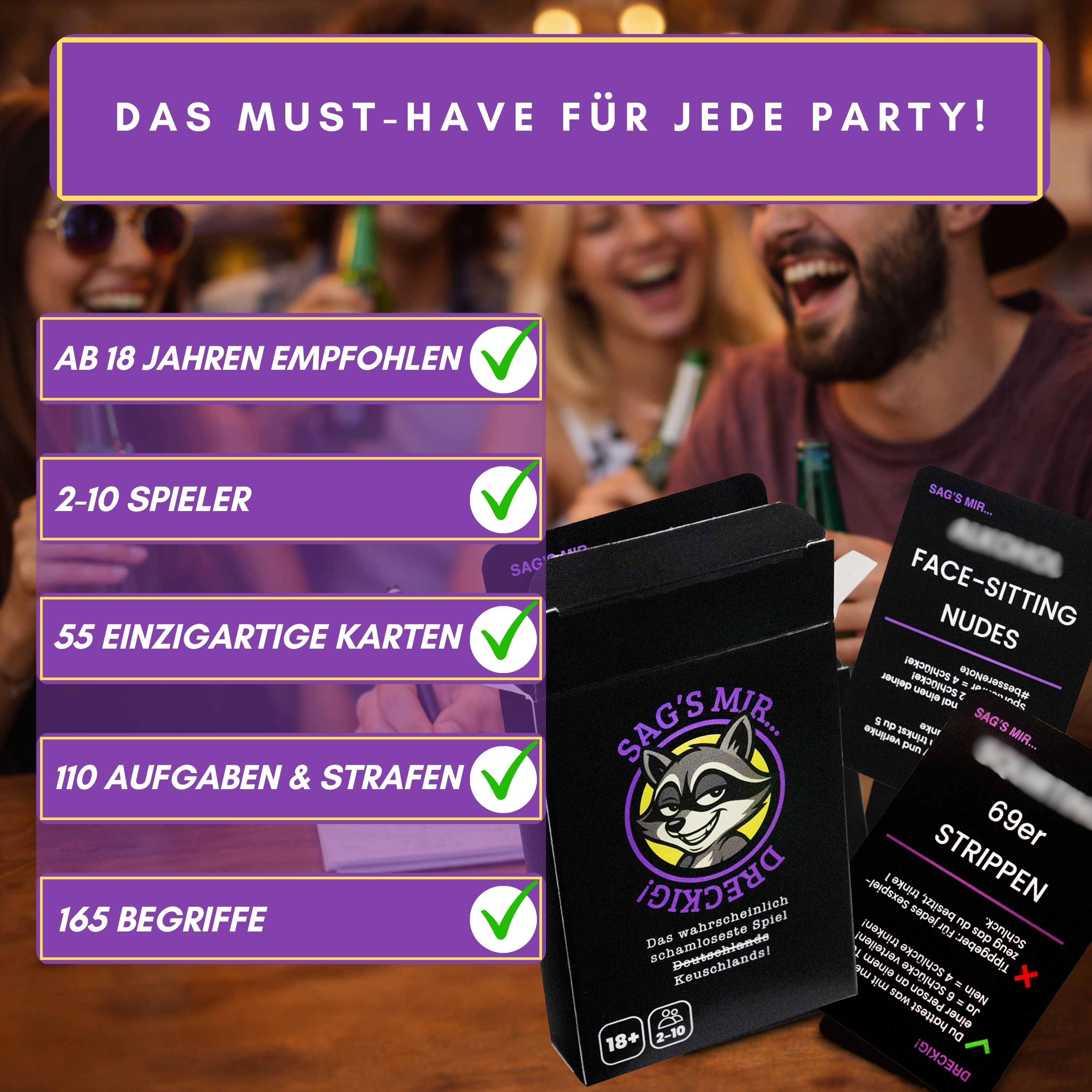 DAS SCHAMLOSE PARTY- & TRINKSPIEL – Die ultimative Mischung aus 165 schamlosen Begriffen und 110 wilden Aktionen & Strafen.
