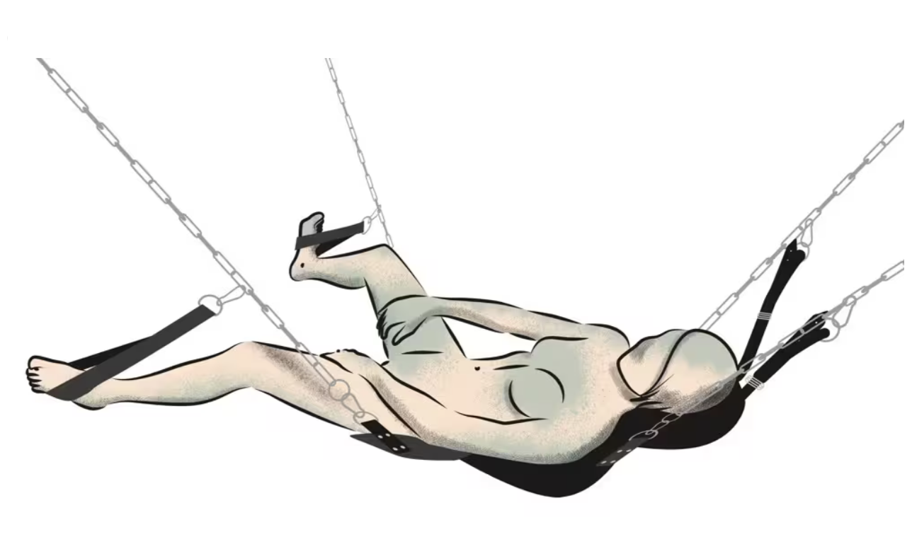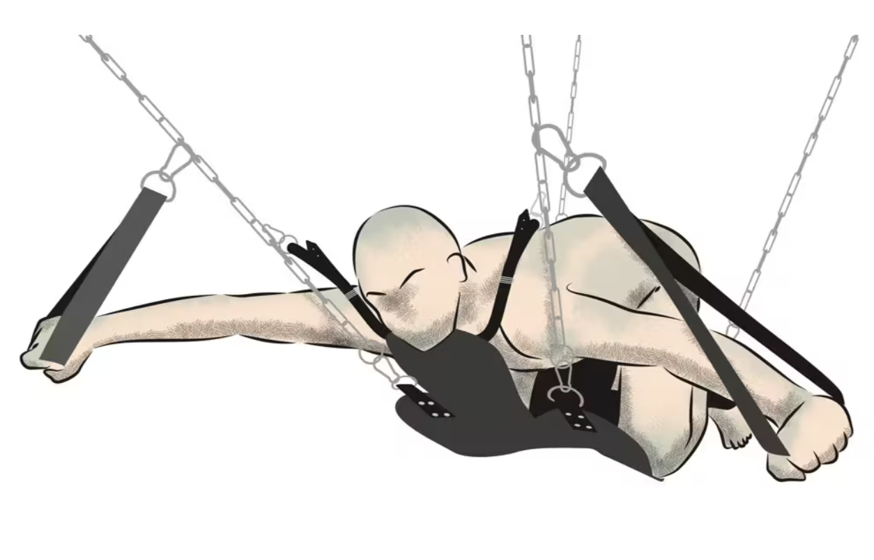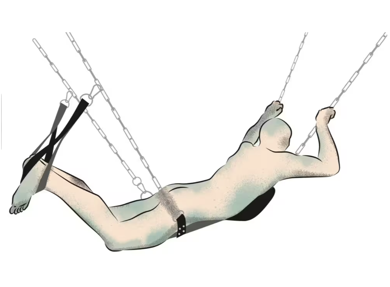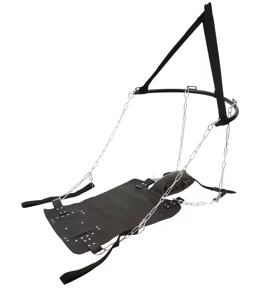 Die Sitz-/Liegefläche (max. 75 cm lang, max. 49 cm breit) aus dickem Leder sowie das weiche Kopfpolster (32 cm x max. 24 cm) sorgen für bequemen Sitz-/Liegekomfort. Das Kopfpolster kann für noch bequemere Positionen im Winkel variiert werden. Die 2 Hand-/Beinschlaufen (Ø 25 cm) können mit ihren Karabinern an den stabilen Ketten individuell befestigt werden und sorgen für sicheren Halt.