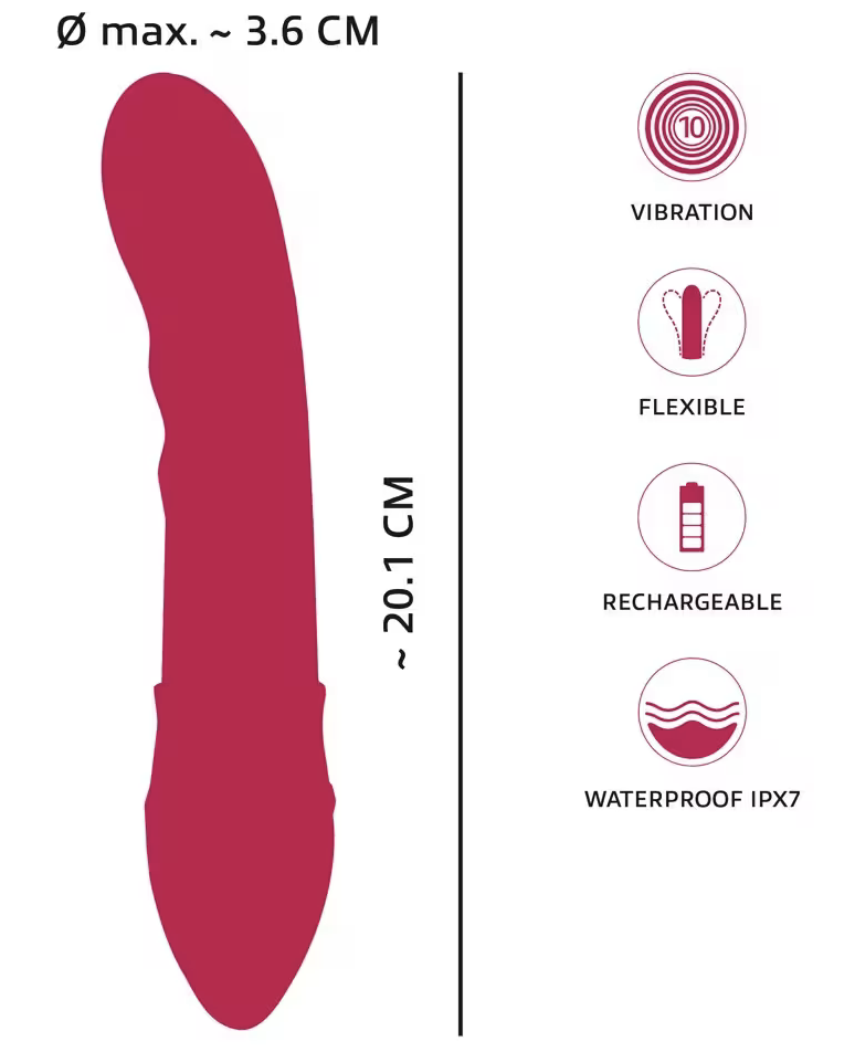 Der formschöne Silikon-Vibrator vibriert besonders stark im Kopf. 10 Vibrationsmodi sind bequem per Knopfdruck direkt am Toy steuerbar. Im Kopf befindet sich auch die Strahldüse für das Wasser. Für den Duschgebrauch wird die Endkappe am Vibrator einfach abgeschraubt und der Vibrator dann auf den Duschschlauch geschraubt. Das Schraubgewinde des Vibrators passt auf jeden handelsüblichen Duschschlauch. Selbstverständlich ist der Vibrator auch ohne Wasseranschluss vielseitig nutzbar.