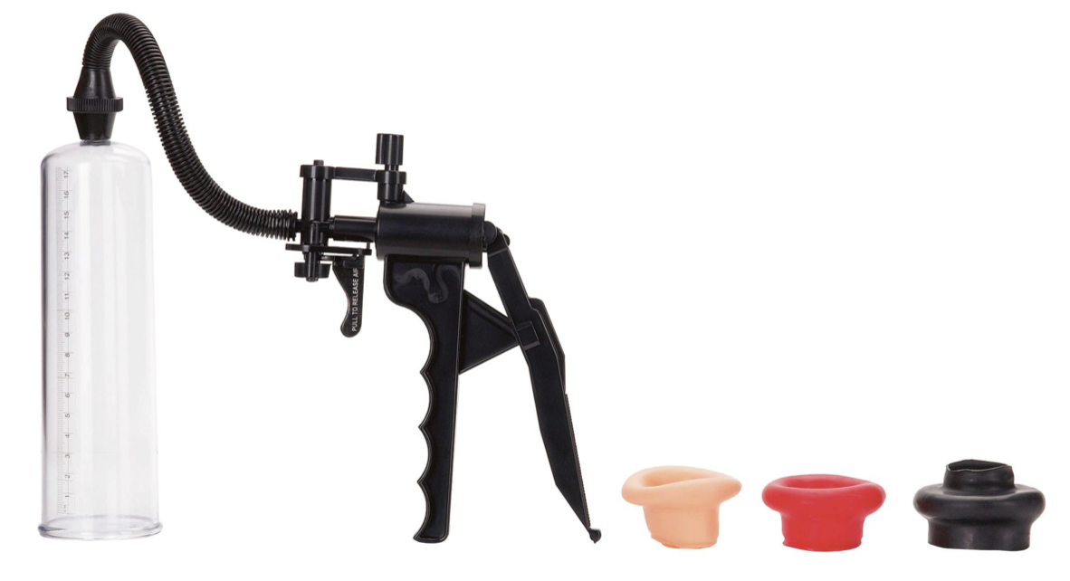 Penispumpe mit Scherengriff, mit 3 farbigen Manschetten
