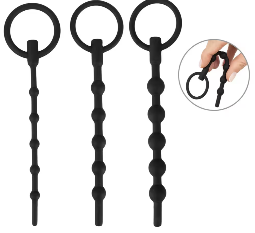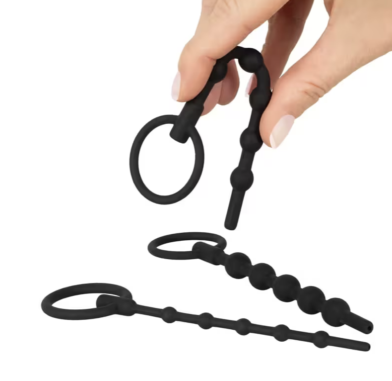 Training Set von Penisplug mit 3 verschiedenen Dilatoren. Alle drei aus seidig softem Silikon und mit stimulierenden Kugeln in verschiedenen Durchmessern. Jeder Kugel-Dilator mit abgerundeter Spitze und Haltering für leichtes Einführen und Rausziehen. Dazu biegsam und flexibel für eine sanfte komfortable Anwendung und optimale Anpassung.