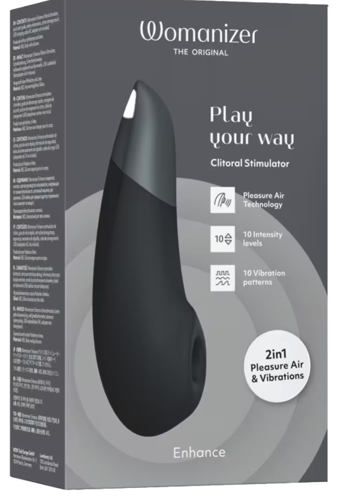 Der ergonomische und handliche ENHANCE von Womanizer begeistert mit der neuen einzigartigen Kombination aus Pleasure-Air-Technologie und ultrastarker We-Vibe-Vibration. Pulsierende Druckwellen verwöhnen berührungslos die Klitoris, während die tiefen kraftvollen Vibro-Schwingungen sich über die gesamte Vulva ausbreiten. Da kommt der Höhepunkt schnell und zuverlässig – Orgasmen für alle!