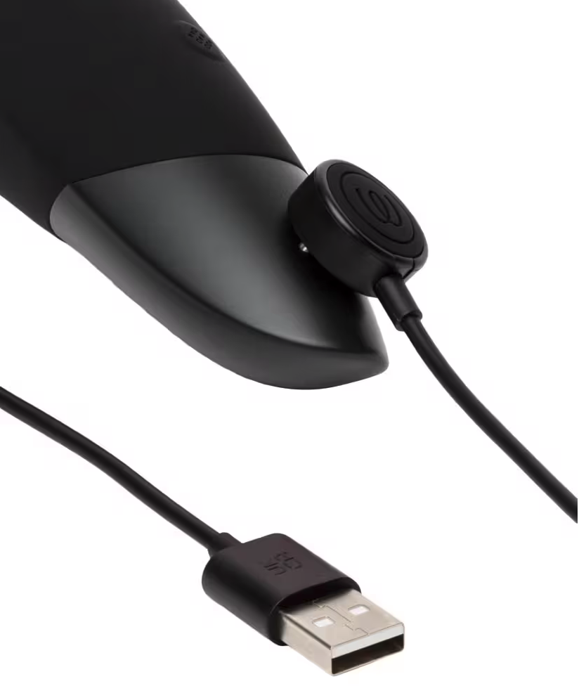 Wiederaufladbar – inklusive USB-Ladekabel und Aufbewahrungsbeutel.