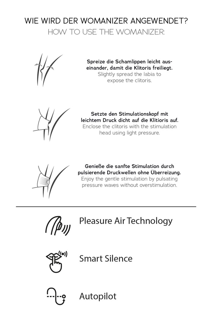 Inklusive Gleitgelprobe We-Vibe-Lube made by pjur (2 ml), Ersatz-Silikonkopf für den Womanizer und Aufbewahrungsbeutel. Alles in schöner Setbox.