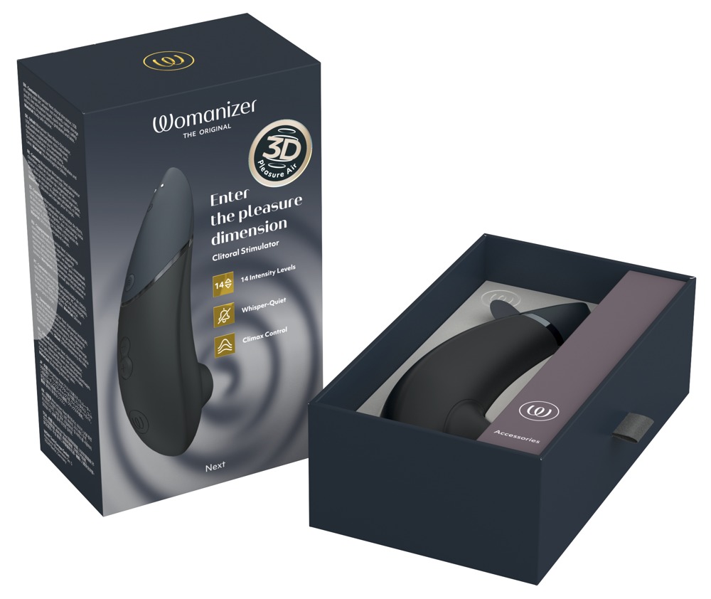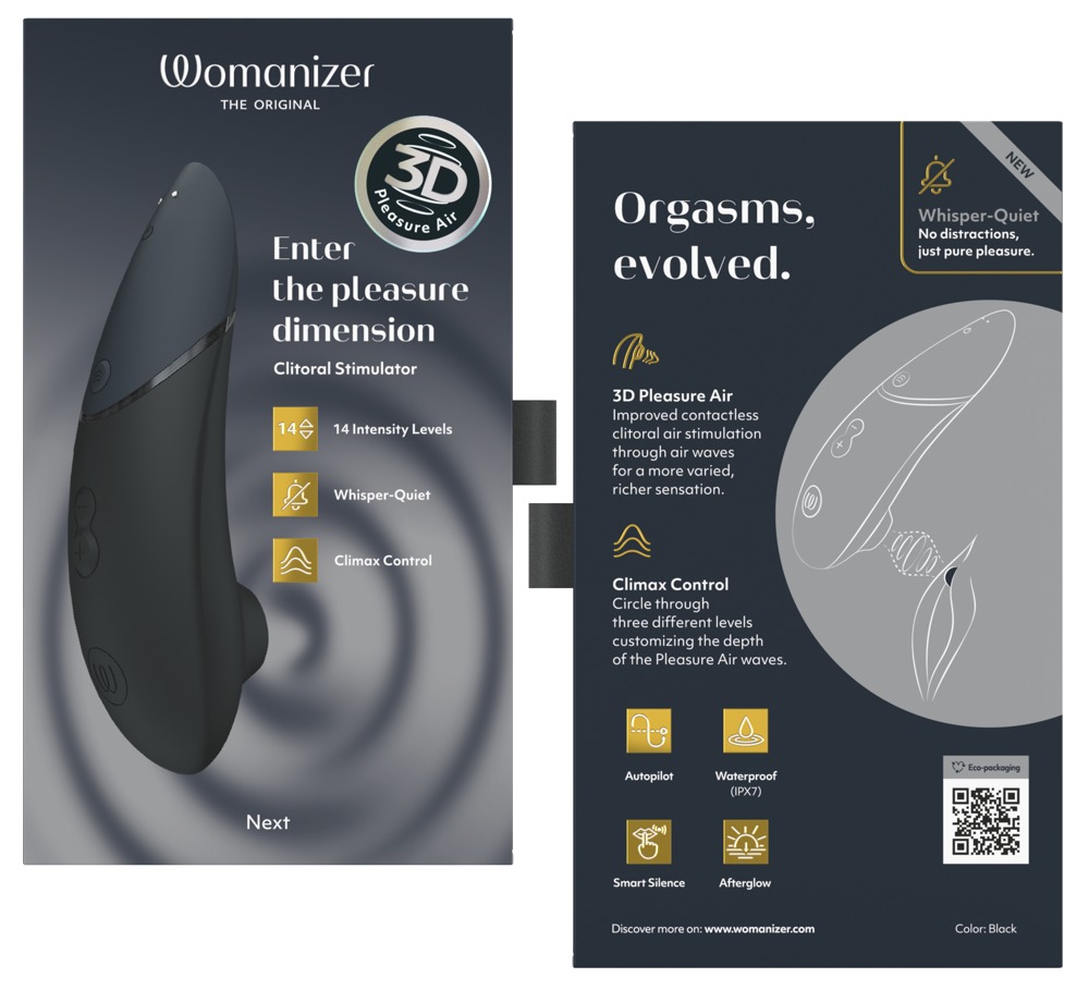 Der Womanizer NEXT jetzt mit nahezu lautloser 3D Pleasure Air Technologie, die die Klitoris berührungslos und punktgenau stimuliert. Mit 14 Intensitätsstufen (+/-) und der neuen Climax Control in 3 Leveln kann die Benutzerin neben der Intensität auch die Tiefe der pulsierenden Druckwellen für ein unvergleichliches natürliches Gefühl verändern. Und multiple Orgasmen erleben! Ohne Gewöhnungseffekt und Überstimulation. Für einen entspannten Orgasmus-Ausklang schaltet der NEXT dann per Knopfdruck direkt auf die niedrigste Stufe zurück (Afterglow).