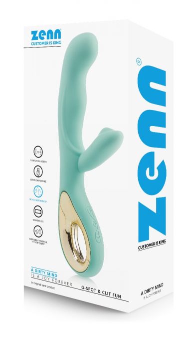 Jetzt können Sie Ihre sexuellen Spiele mit einem weichen, seidigen Silikon genießen, das von der ersten Sekunde an die pure Lust vermittelt, denn sobald Sie es eingeführt haben, kann der zweite Stimulator entweder Ihre Klitoris oder Ihren G-Punkt befriedigen. Es ist an der Zeit, dass Sie sich Ihrem Glück hingeben und sensationelle Orgasmen erleben. Einfach per USB aufladen und etwas ZENN-Gleitgel auf Wasserbasis für zusätzlichen Genuss hinzufügen. Nach jedem Gebrauch mit Wasser und Seife reinigen, in der Schachtel aufbewahren. • G-Punkt- und Klitoris-Stimulator • 10 leistungsstarke Vibrationsmodi • Handgriff • Aus hochwertigem Silikon • Spritzwassergeschützt Produktspezifikationen: • Länge: 200 mm • Einführbare Länge: 100 mm • Durchmesser: 31 mm • Gewicht: 125 g • Material: Silikon + ABS • Farbe: Mintgrün • Stromversorgung: USB